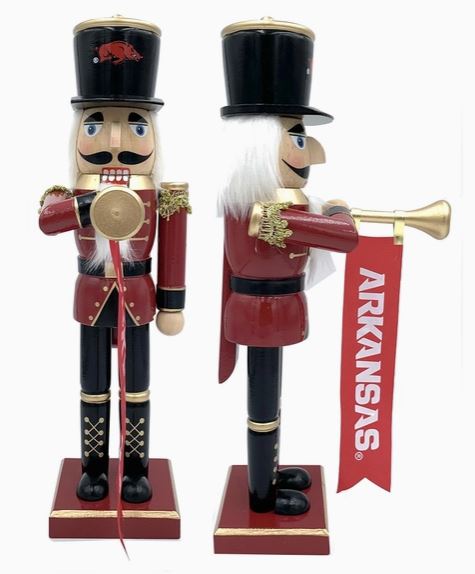 This handsome Christmas nutcracker has put on his finest uniform and eagerly waits to blow his golden horn announcing Santa’s arrival. Beautifully handcrafted from wood and hand painted, this elegant 14" Arkansas Bugler Nutcracker is sure to provide many years of pleasure.