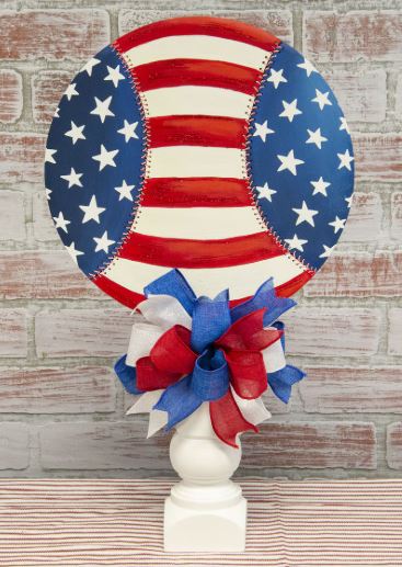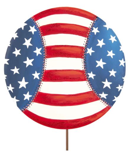 Our versatile All American Baseball stake provides a variety of options! Whether you stake it or hang it in your home or garden, it will enhance your decor with a unique touch. This Americana baseball design is especially perfect during patriotic celebrations.