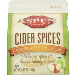 Aspen Mulling Caramel Apple Spice Blend is a delicious and classic combination of spices which adds a delicious twist to juices, teas and brandies. Excellent for use in baked goods. 5.65 oz carton.