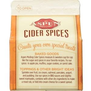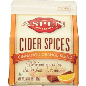 Aspen Mulling Cinnamon Orange Spice Blend is a delicious and classic combination of spices which adds a delicious twist to juices, teas and brandies. Excellent for use in baked goods. 5.65 oz carton.