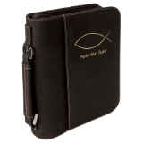 Black/Gold Leatherette Book/Bible Cover with Handle & Zipper