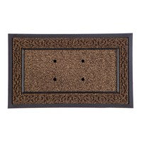 A brown rubber base tray designed to hold 22"W x 10"L Sassafras inserts. The outer base has a felt embossed scroll solid borders and the inner base has holes to drain water.