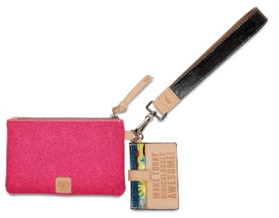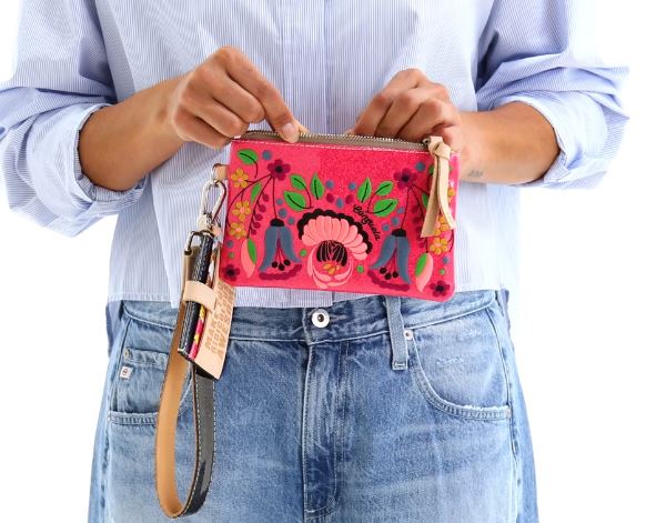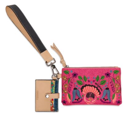 The Combi, a combination of on-the-go accessories, is a new way to carry your keys, cards, and the small stuff together or separately. This embroidered wristlet wallet includes a pocket pouch, secure card slot wallet and fits comfortably around your wrist.
