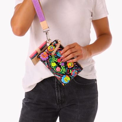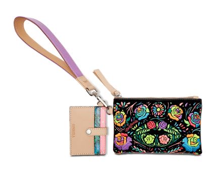 The Combi, a combination of on-the-go accessories, is a new way to carry your keys, cards, and the small stuff together or separately. This embroidered wristlet wallet includes a pocket pouch, secure card slot wallet and fits comfortably around your wrist - and this collection is the first time we have featured embroidery on a Combi!