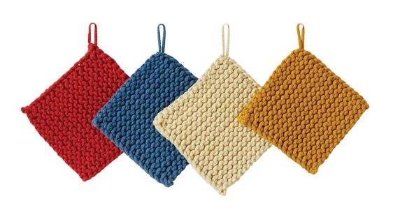 8" Square Cotton Crocheted Pot Holder, 4 Colors