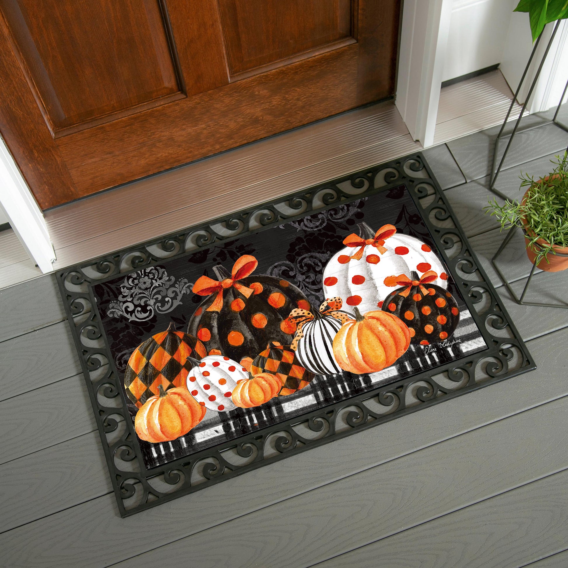 Give guests a warm welcome with this Sassafras Switch Mat. It features a patch of playful pumpkins with fun patterns. Crafted from heat-sublimated polyester with a rubber backing, this versatile mat is designed to fit perfectly within Evergreen's switch doormat bases. The mildew resistant mat is ideal for indoor or outdoor use and features a skid-resistant backing to help keep it in place. This welcoming mat will freshen up your stoop season after season while ensuring your home stays debris-free. For stains, simply spot clean with soap and warm water.