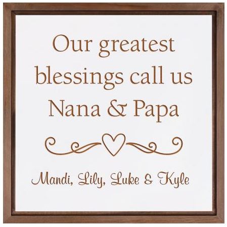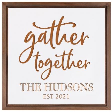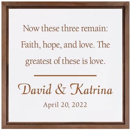 Surrounding the piece, the natural wood frame creates both dramatic effect and unique shadowing. Features a pocket mount on the back for easy wall application. Customize with your own sentiment, name, or date.