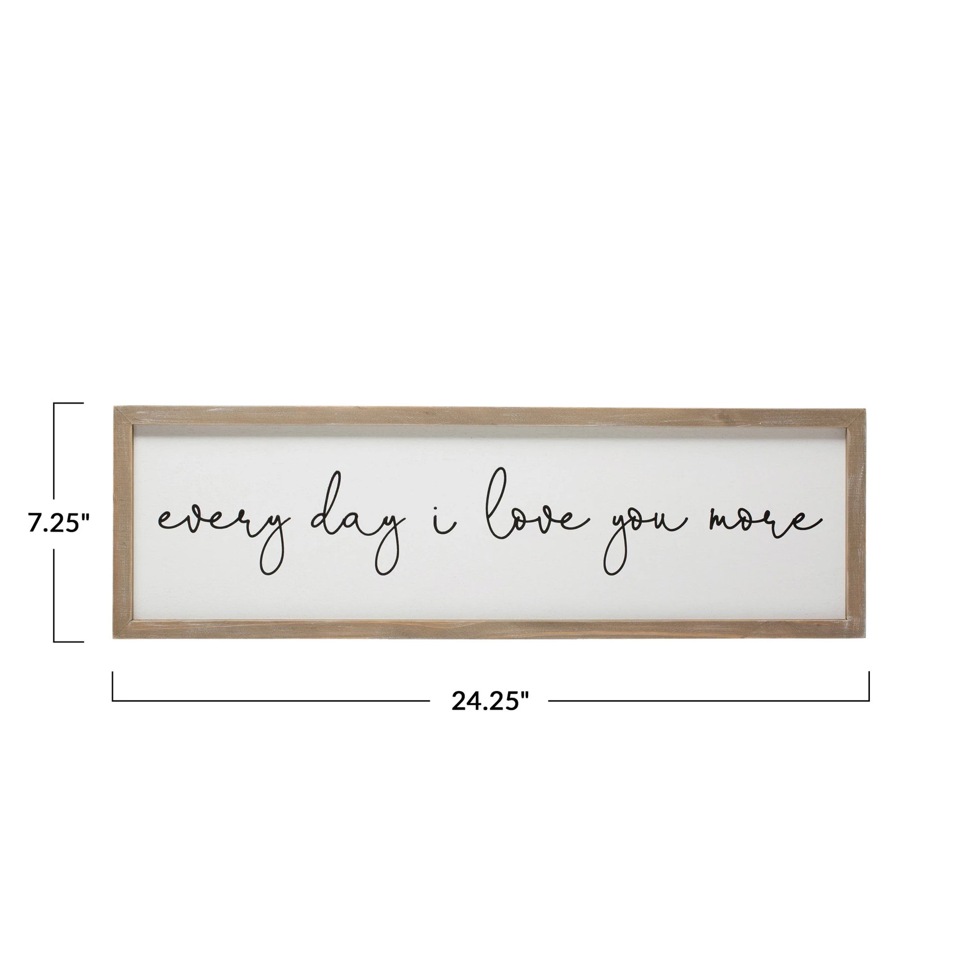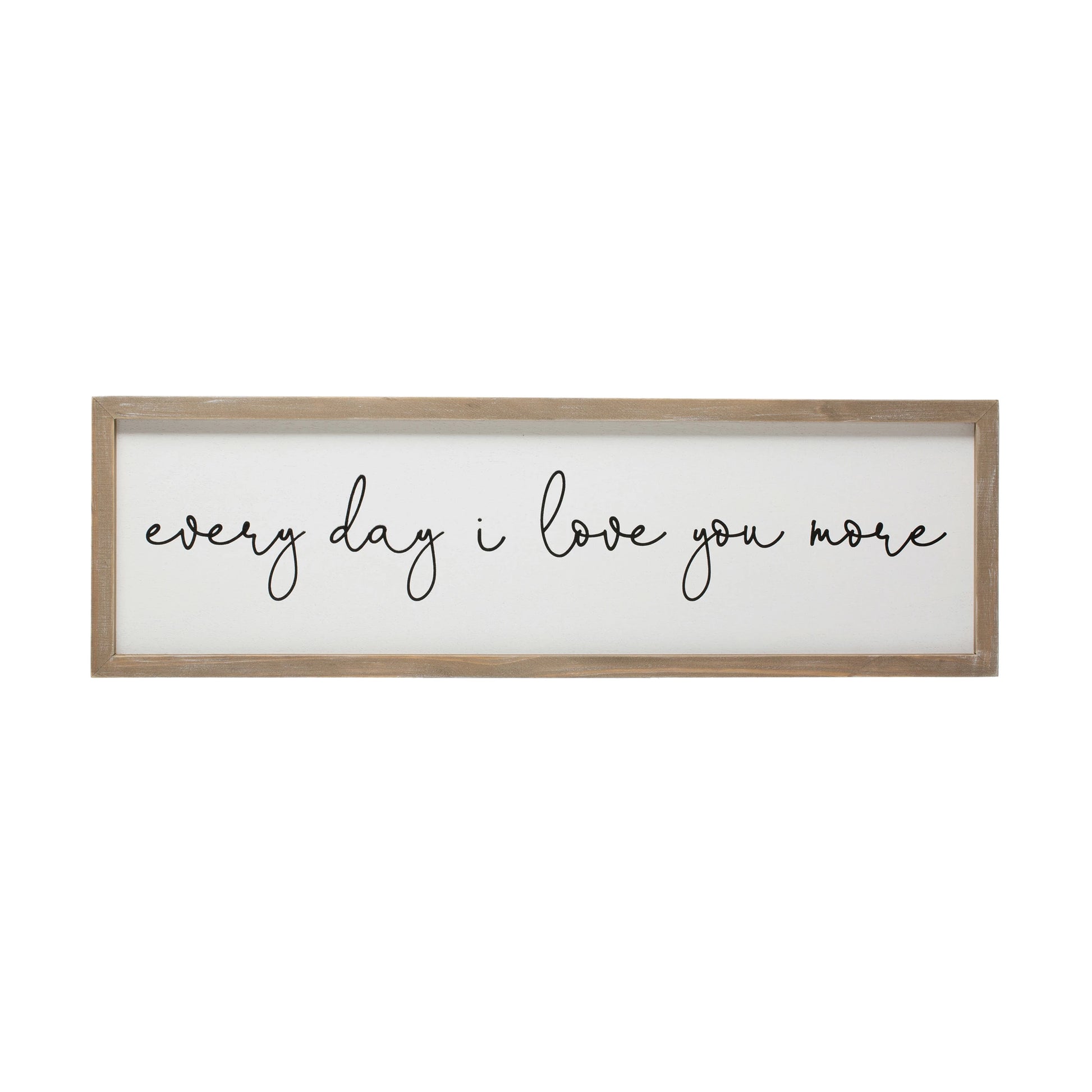 This wall decor is an easy and adorable way to style any wall. Framed in MDF, this wall decor reads "Every Day I Love You More" in black and white. Perfect for a home filled with love, this piece easily adds a pop of style to any empty wall space