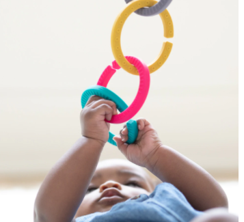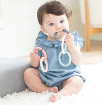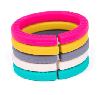 Introducing your new favorite product. Is it a toy? A teether? A link? Yes, it is. It’s pretty much magic what our Happy Links can do. We took the classic link and made it into the product we wish we had for our littles. Generously sized, easy to grip and wrapped in food-grade silicone, our links relieve little gums, keep toys and lovies attached and keeps kids entertained. Our Happy Links set includes 5 links for teething playing and organizing. Attach them to the stroller, rocker, play gym, or carrier to bring the fun wherever you go.