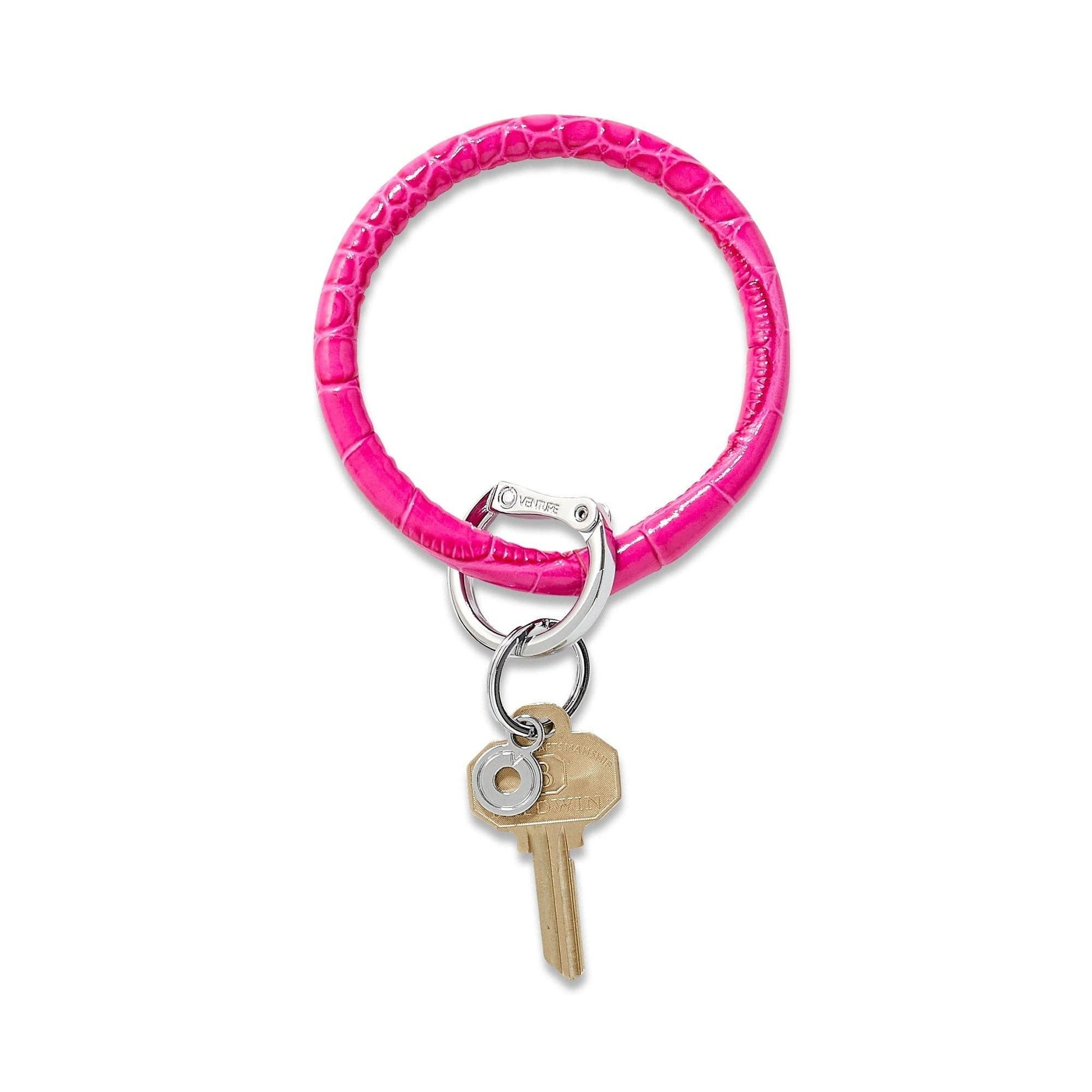 Leather Big O® Key Ring - Pink Topaz Croc-Embossed