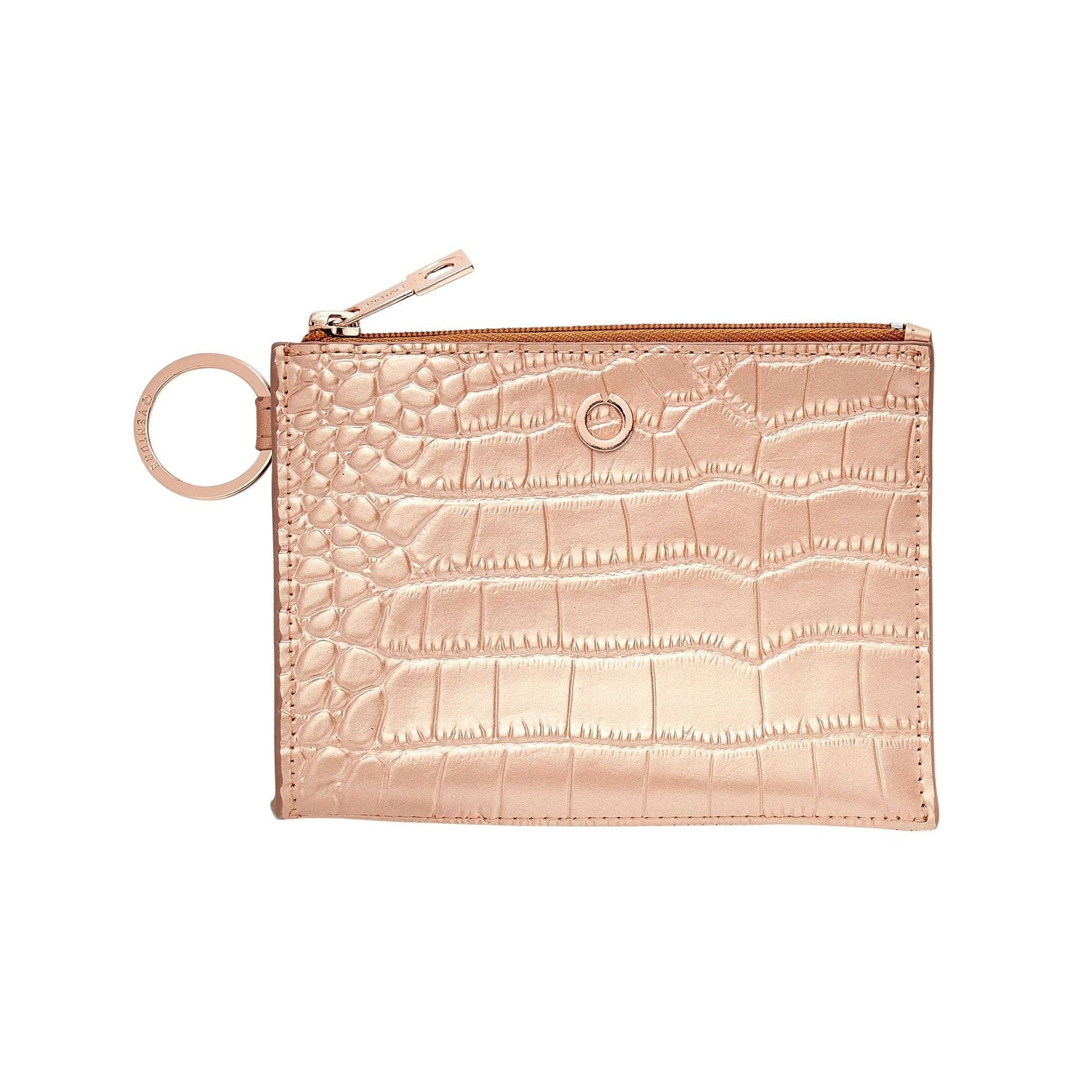 Leather Ossential Card Case - Solid Rose Gold Croc-Embossed