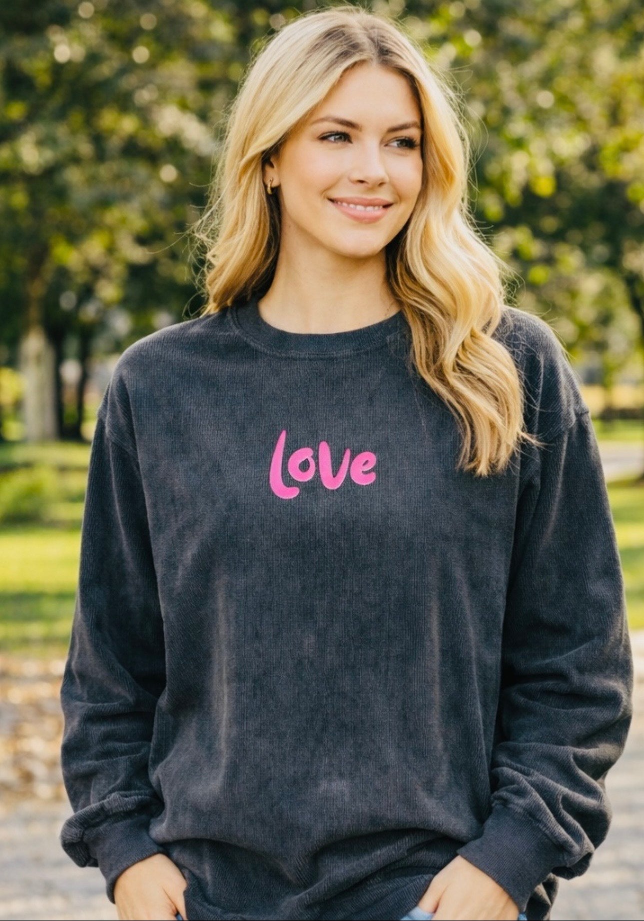 Love Them Anyway Luke 23:34 On our always popular black ribbed sweatshirt. The Hot Pink writing will be an eye catcher for sure. By Grit & Grace Apparel Co.