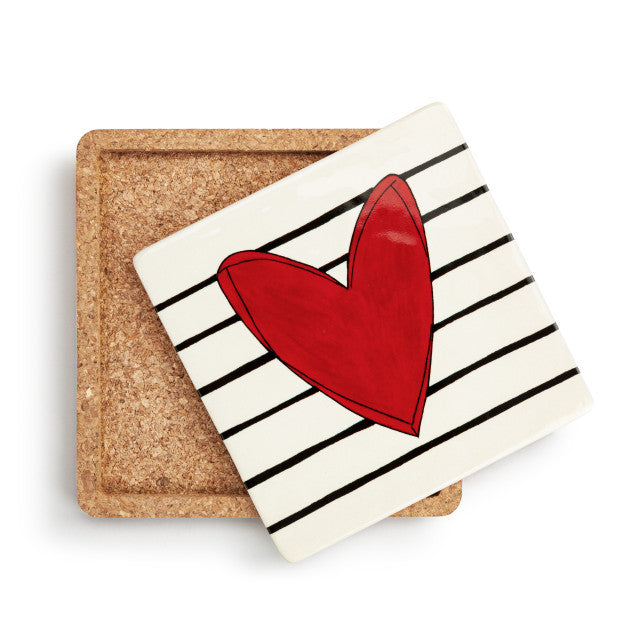 The stoneware, cork Red Heart Cork Base Trivet is the perfect kitchen accessory. This off-white serveware features artisan craftsmanship and is perfect for any housewarming entertaining. A useful and gorgeous gift for an avid baker.