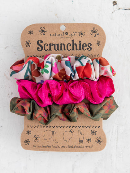Set of 3 scrunchies features 2 printed and one velvet scrunchie