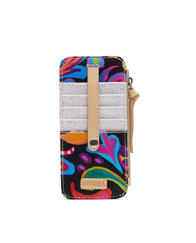 Perfect for a night out or for catching a show, this card organizer makes it easy to access your cards, ID and quick cash. A mix of color and print, this card organizer features our specialty Sophie ConsuelaCloth™. Now get going, babe!