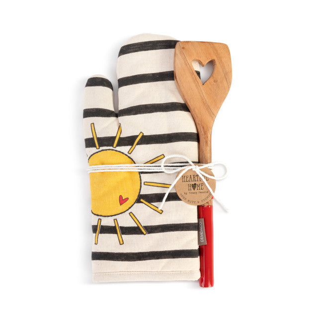 Cook and clean up in style with the colorful Sun & Stripes Hot Pad with Spatula Set from the Heartful Home by Tracy Pesche collection. With 100% cotton and wood, this artisan kitchen set is a thoughtful and useful gift for the cook or baker!