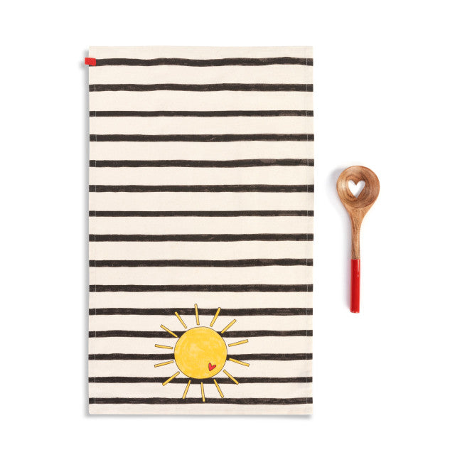 Sun & Stripes Kitchen Towel with Heart Spoon Set