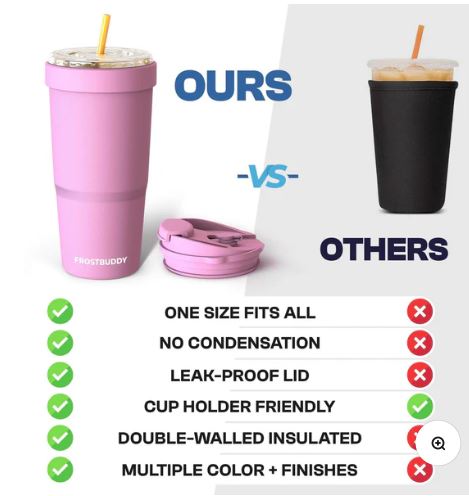 Goodbye watered down coffee or crappy neoprene sleeves. The To-Go Buddy fits every size hot & cold cup you need and keeps your ice for up to 24 hours. Want to use it as a normal tumbler? That’s fine, just pour it in!