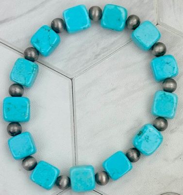 Blue turquoise stone beads with silver Navajo pearl beads Bracelet