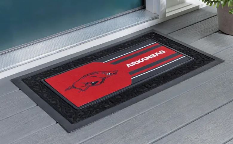 Game day is here! Dont be the only one not showing support. Place this mat in front of the door to welcome friends and family to the home. Sure to incite cheers of fellow fans, it makes the perfect gift for anyone who spends their days checking the score. Crafted from heat-sublimated polyester with a rubber backing, this versatile mat is designed to fit perfectly within Evergreen's switch doormat bases. The mildew resistant mat is ideal for indoor or outdoor use and features a skid-resistant backing to help keep it in place. This welcoming mat will freshen up your stoop season after season while ensuring your home stays debris-free. For stains, simply spot clean with soap and warm water.