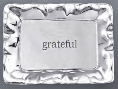 "Gratitude makes sense of our past, brings peace for today, and creates a vision for tomorrow." -Melodie Beattie For what are you grateful? Remind yourself--and others--of your daily blessings with this inspirational GIFTABLES Vento Rectangular Engraved Tray from Beatriz Ball. Engraved with the word, "grateful," this delightful mini tray is distinguished by its rich, hand finished surface, and practical size. Perfect item for your desk or bedside table, or display on your coffee table as a decorative accent. From our GIFTABLES Collection featuring handmade and artfully designed Beatriz Ball items at irresistible prices. Packaged in a lovely gift box, makes lovely present for the Holidays, birthdays, anniversaries, and other occasions. Great gift for Millennials. Pair it with our GIFTABLES Holiday Pumpkin Bowl with Spoon (7395) for a lovely set for Thanksgiving. An original Beatriz Ball design handmade of an FDA safe, easy-care, oven and freezer friendly aluminum alloy. Tarnish free.