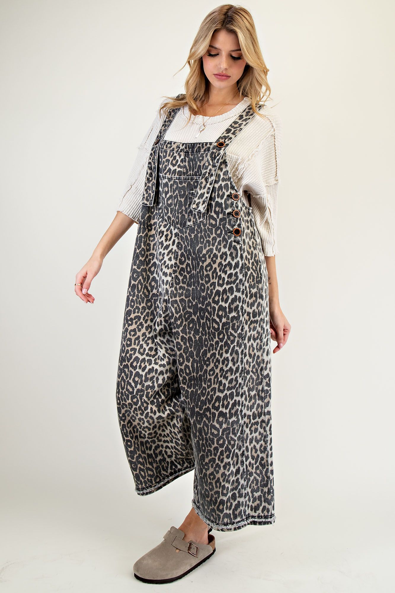WASHED ANIMAL PRINT TWILL OVERALLS